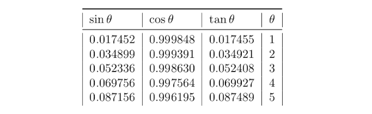 But circles and right-angled triangles are very different, and the price of having simple values for the angle is borne by the ratios, which are very complicated and must be approximated.
