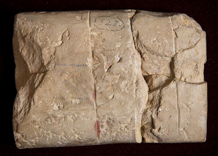 Plimpton 322 is a broken clay tablet from the ancient city of Larsa, which was located near Tell as-Senkereh in modern day Iraq. The tablet was written between 1822-1762BCE.