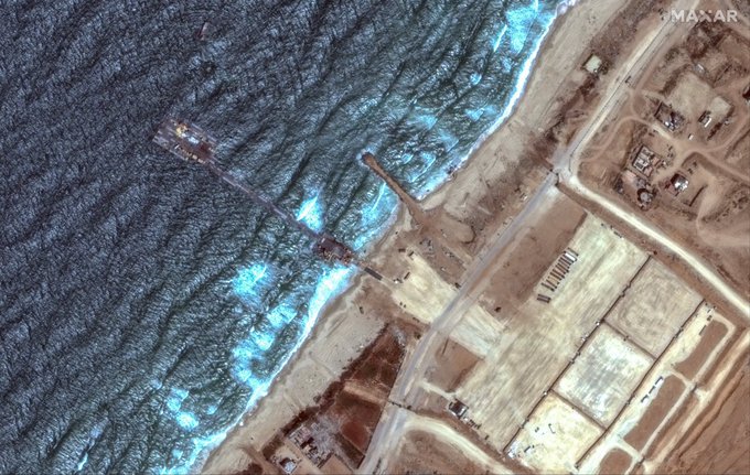 🇺🇲🇵🇸 $320 million Gaza pier, a floating dock built by the US Army, has now broken loose and has reportedly began sinking.@clashreport pic.twitter.com/y10wIkC8Pg