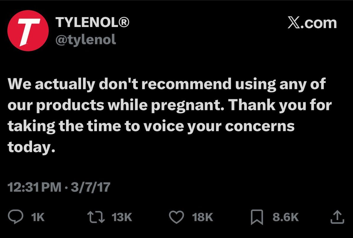Pregnant women have posted videos on X and TikTok filming themselves taking a Tylenol tablet with captions like, “Here’s me, a PREGNANT woman, taking TYLENOL because I believe in science and not someone who has no medical background.”