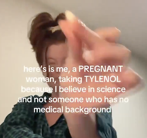 Pregnant women have posted videos on X and TikTok filming themselves taking a Tylenol tablet with captions like, “Here’s me, a PREGNANT woman, taking TYLENOL because I believe in science and not someone who has no medical background.”