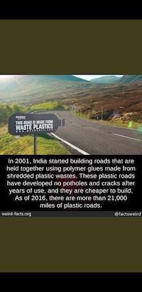 India has pioneered polymer-modified roads since the early 2000s, led by Professor Rajagopalan Vasudevan’s “polymer glue” technique. Waste plastics—primarily carry bags, packaging, and low-value films—are shredded, heated to 160-170°C, and coated onto aggregates or directly mixed with hot bitumen (typically 6-10% plastic by weight). This replaces part of the petroleum-based bitumen and creates a flexible, oily coating. Companies like KK Plastic Waste Management patented specialized poly-blends, enabling large-scale adoption. By 2025, India has laid over 100,000 km of such roads across 11+ states, including national highways. The process consumes millions of tons of plastic waste annually (e.g., 1 ton per km, equivalent to 1 million carry bags), diverting it from landfills and oceans.