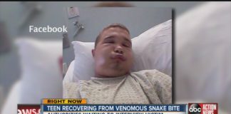 A Hillsborough County, Fl., teenager is recovering after he was bitten in the face by a venomous water moccasin snake, …