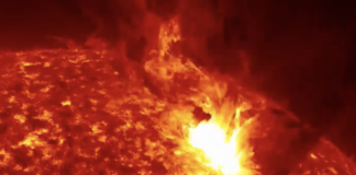 This timelapse covers approximately four hours and was captured at a wavelength of 304 angstroms. Source and more details: https://svs.gsfc.nasa.gov/10801 …