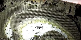 It doesn’t look too bad on the outside. Some yellowjackets are going in and out of a small hole in …